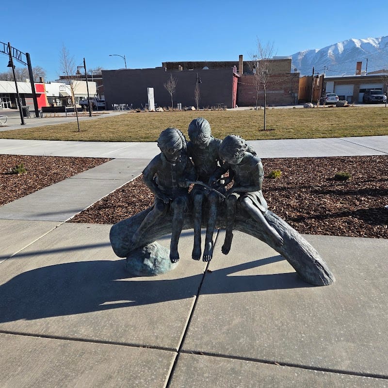 Midland Square Park serves as the town center for downtown Tremonton, featuring paved walking trails, multiple benches, and sculptures of children scattered throughout the grounds. The park is home to the Northern Box Elder Veterans Memorial and a clock tower, making it a notable civic space in addition to a spot for casual strolls. Mature trees provide shade along the pathways, though there's no playground equipment or sports facilities. The accessible trails and central location make it a practical stop for a short walk or a moment of quiet near the memorial.