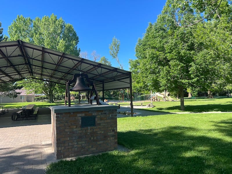 Riverside Park in Riverside offers a well-equipped playground with six total swings (including two infant/toddler swings), two slides sized for younger children, and a set of monkey bars. The large pavilion shelters more than a dozen picnic tables, making it a convenient spot for group gatherings. Mature trees on the west side provide good shade during late afternoon and evening hours, though the park lacks restroom facilities. The open grassy area and backstop fence accommodate informal baseball or kickball games.