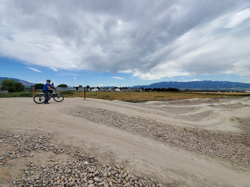 Bridger Bike Park in Logan offers a pump track and dirt jumps designed for young riders, with features manageable for kids as young as three on balance bikes. The park includes some technical spots for more experienced elementary-aged riders, plus pickleball courts and restrooms. Shade is limited, and the area is known for goat head thorns, so check tires after riding and bring plenty of water on hot days.