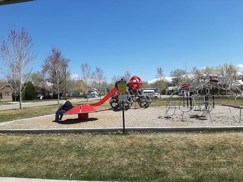 Central Park serves as Clearfield's main gathering space for community events like the annual Fourth of July parade staging area, located just east of the city building next to Wasatch Elementary School. The park includes a small playground with slides and a merry-go-round, a walking trail, and restrooms that are available seasonally. A large open field and small baseball field provide plenty of room for sports and games, with ample parking making it easy to access for activities or quick visits.