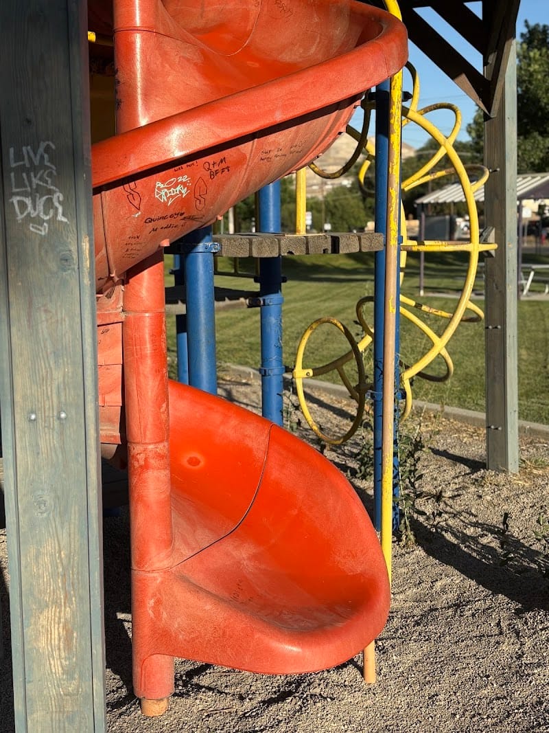 Bluffdale Lions Park covers the basics with swings, slides, a merry-go-round, and a seesaw, making it a straightforward spot for toddlers through elementary-aged kids. The park includes a walking trail that loops around the play area, plus a pavilion and restrooms for longer visits. Shade is available near the playground, which helps during the summer heat. The playground isn't fenced, so younger kids will need supervision near the trail and parking areas.