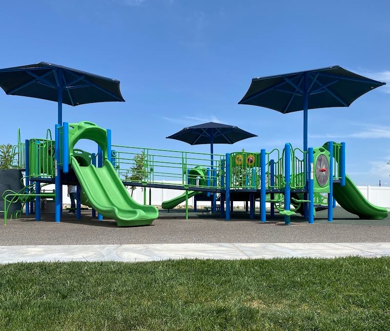 L & L Hamilton Park is a basic neighborhood park in Herriman with playground swings suited for younger kids, plus restrooms and a covered pavilion for family gatherings. The park includes shaded areas and accessible features, making it manageable for families with toddlers through elementary-aged children. It's a straightforward spot for a quick playground visit or a picnic under the pavilion.