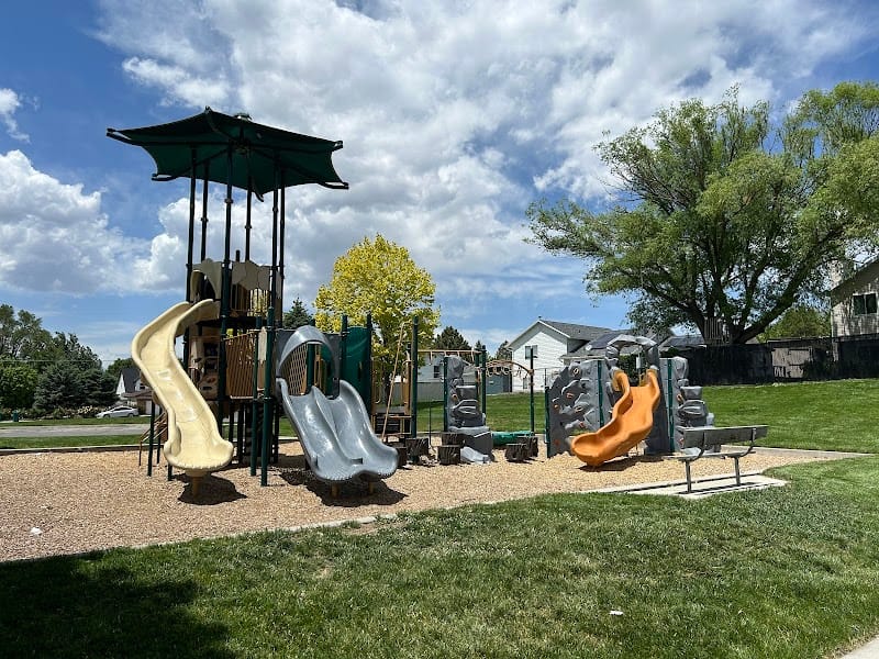 Centennial Park in Lehi offers a skate park, basketball court, and playground with slides that appeal to kids and teens alike. The walking trail provides a route for a quick walk or jog, and there's a pavilion for picnics or group gatherings. Shade is limited throughout the park, so plan accordingly on hot days. No restrooms are available on-site.