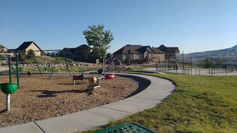 Eagle Summit Park in Lehi covers the basics with a fenced playground that includes swings and slides, plus a pavilion with restrooms available on-site. The park offers a walking trail that loops through the space, and sports options include a basketball court along with tennis and pickleball courts. Shade is limited throughout the park, so plan accordingly on sunny days, though the fencing provides peace of mind for families with younger children.