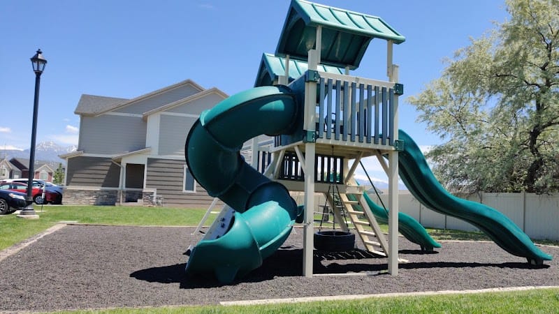 East River View Park is a small neighborhood park in Saratoga Springs with a basic playground set and a couple of tables serving the surrounding townhouse community. The play area has rubber chip surfacing and benefits from one medium-sized tree that provides some shade. Despite the name, there's no actual river access from this spot.