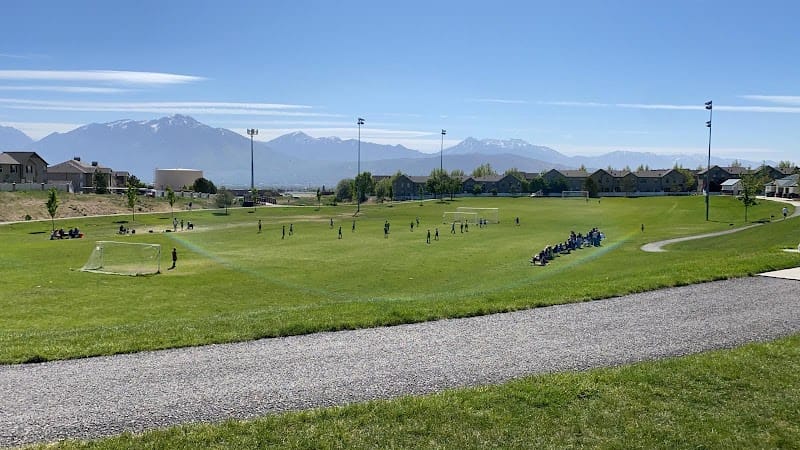 Harvest Park sits on a hillside in Lehi with sweeping views of the valley below, making it a popular spot for winter sledding and summer fireworks. The park has a soccer field, a playground, a few picnic benches, and a steep grassy hill that doubles as both a play area and prime sledding terrain when snow arrives. Shade is limited, particularly in the late afternoon, so plan accordingly on hot days. The open layout and scenic location make it a convenient stop for kids to burn off energy while taking in the mountain views.