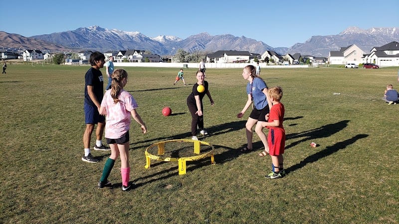 Osier Park in Lehi sits alongside a reservoir and offers a large grassy area ideal for lawn games and picnics, though it doesn't have playground equipment. The park includes a covered pavilion with picnic tables and seasonal restrooms, making it a straightforward spot for family gatherings or a casual afternoon outdoors. With plenty of shade available and accessible facilities, it's a relaxed option for those who prefer open space over structured play areas.