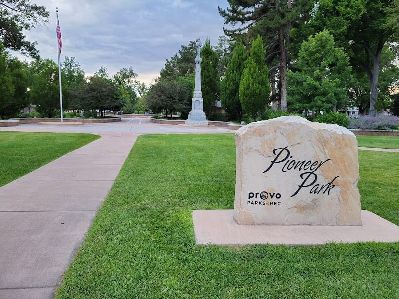Pioneer Park in downtown Spanish Fork is a no-frills community park with a shaded playground, sandbox, and covered pavilions. The equipment is clean and well-maintained, with solid options for toddlers and younger kids. The central location makes it easy to combine with a trip to the Spanish Fork farmers market or nearby shops.