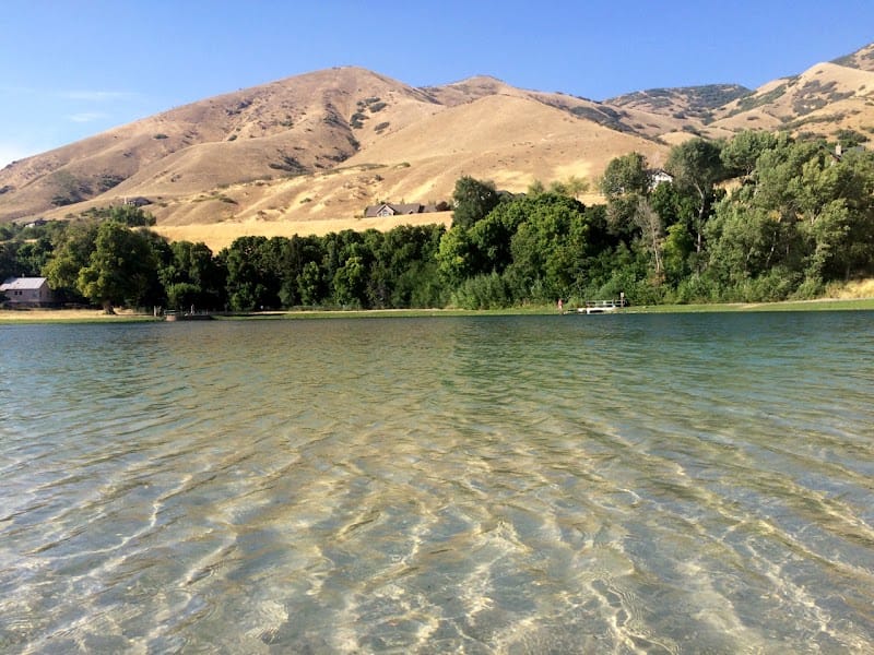 Wayne Bartholomew Family Park in Springville centers around a pond with a sandy beach that's maintained and groomed for swimming. The water is clear enough to spot fish, and the park charges a parking fee to access the beach area. Multiple pavilions provide covered spaces for picnicking near the water, and a walking trail connects the grassy areas around the pond. Shade is limited across the park, so plan accordingly on hot days.