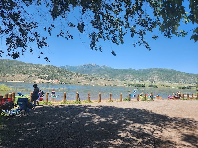 Charleston Day Use Area sits along Deer Creek Reservoir and functions primarily as a boat launch and water access point rather than a traditional park. The shoreline is marshy with mucky water better suited for kayaking or paddleboarding than swimming. Shade is essentially nonexistent, so plan accordingly. Access costs $20 per vehicle on Saturdays, paid through an online QR code system at the entrance.
