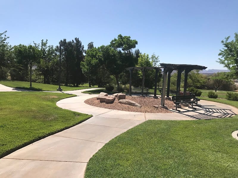 2450 East Park in St. George covers the basics with a basketball court, swings, a sandbox, and a walking trail, plus restrooms and a shaded pavilion for breaks from the sun. The park is dog-friendly and has accessible pathways, making it easy to navigate for visitors of all ages. It's a straightforward community park that works well for a quick playground visit or shooting hoops, though dog owners should keep an eye on what their pets might find on the ground.