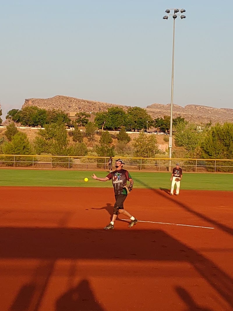 Bloomington Park offers a solid mix of recreational options with softball fields, a basketball court, pickleball courts with well-designed ball containment fencing, and a playground geared toward elementary-age kids with swings. The park includes restrooms, a walking trail, and shaded areas, making it comfortable for extended visits. The setting provides mountain views in multiple directions, adding scenic appeal to the sports and play facilities.