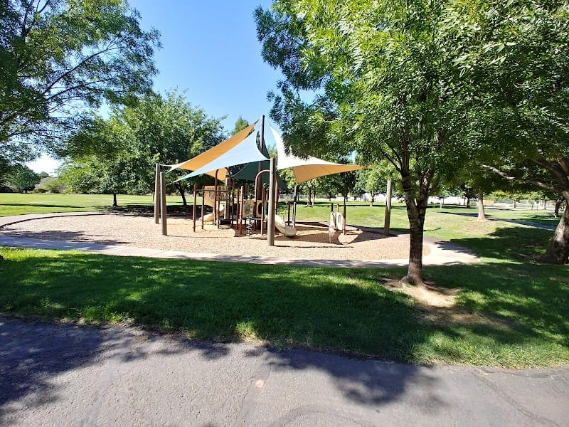 Mathis Park offers a walking trail that loops through the grounds and features a 9-basket disc golf course for casual rounds. The park hosts a Saturday market with food vendors, live entertainment, and local craft booths, making it a regular community gathering point in St. George. Restrooms and a shaded pavilion provide convenience for longer visits, and the setup works well for toddlers through adults who want to stroll, play disc golf, or browse the weekend market.