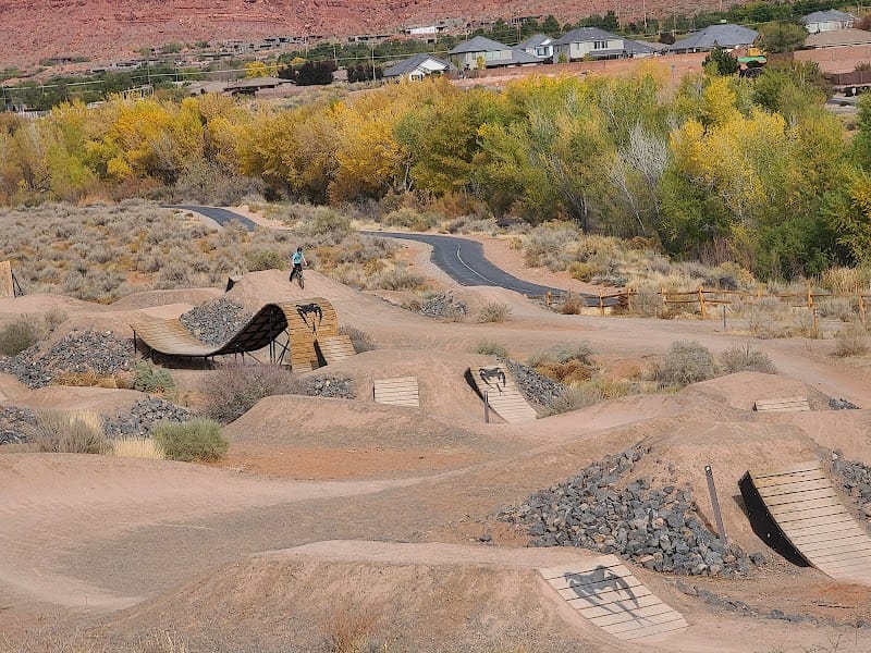 Snake Hollow Bike Park in St. George delivers terrain for mountain bikers of varying abilities, from beginners to more advanced riders. The park includes a walking trail for those who prefer to explore on foot, plus a pavilion and restrooms. Shade is available, which makes a real difference during the hot southern Utah months.